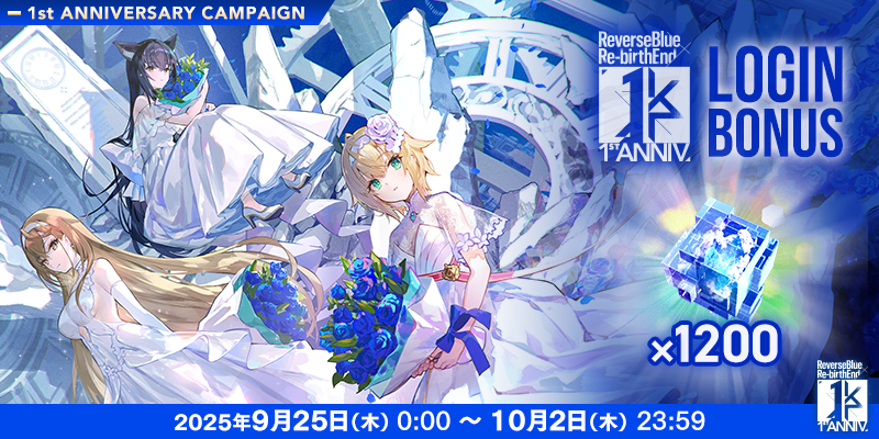 1周年の感謝をこめて蒼空結晶ダイヤ【1200個】がもらえる1周年アニバーサリーログインボーナスが開催中です。